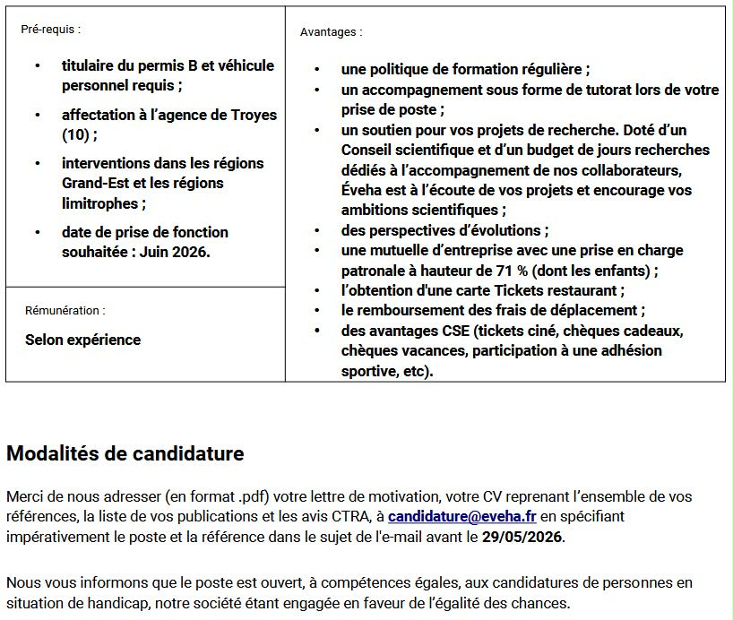 Le bureau d'études ÉVEHA recrute un Responsable d'opération spécialiste de la Protohistoire (f/h) en CDI - Troyes