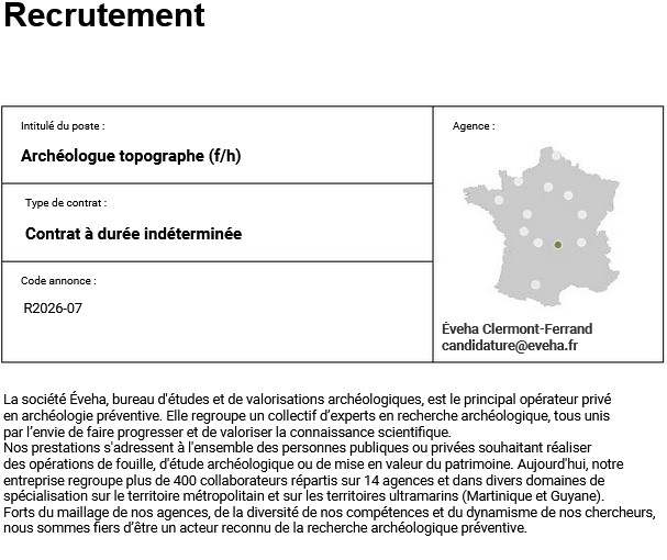 d'études ÉVEHA recrute un Archéologue